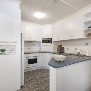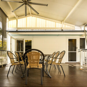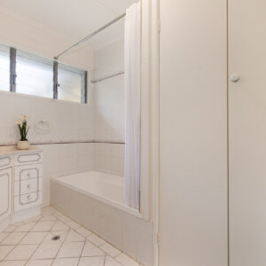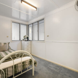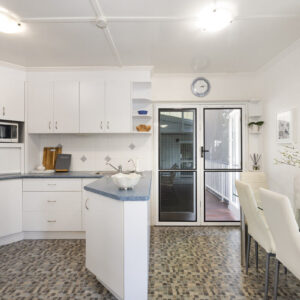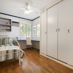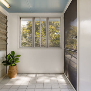With a traditional layout that reflects the building’s personality, visitors step into a bright and airy foyer that then opens up to the heart of the home. The wide living room leads to a tidy kitchen and dining space, and the cool and sizeable patio to the rear, while also giving access to the front sleepout that is an ideal office or fourth bedroom. Just down the hall are three bedrooms, including a spacious primary room, all with large built-in robes, and the family bathroom, also with its own built-in linen press.