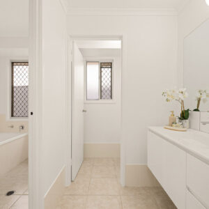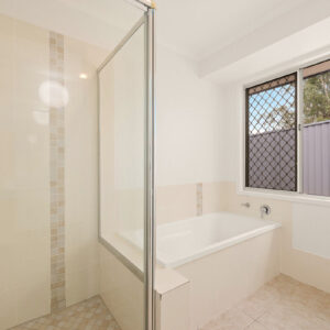 * 3 bedrooms, 1 bathroom with separate toilet, vanity, and shower