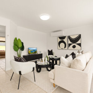 The living areas are the heart of this home, with a generously sized kitchen and a large dining space that opens directly to the wide verandah, creating a relaxed indoor and outdoor flow. The three bedrooms are well positioned, and the bathroom is designed with practicality in mind, with the toilet, vanity, and shower each in their own separate zones. Fresh paint, tiled flooring, air conditioning, solar power, and security screens add comfort and ease throughout, making this a tidy and move-in ready home with nothing left to do.
