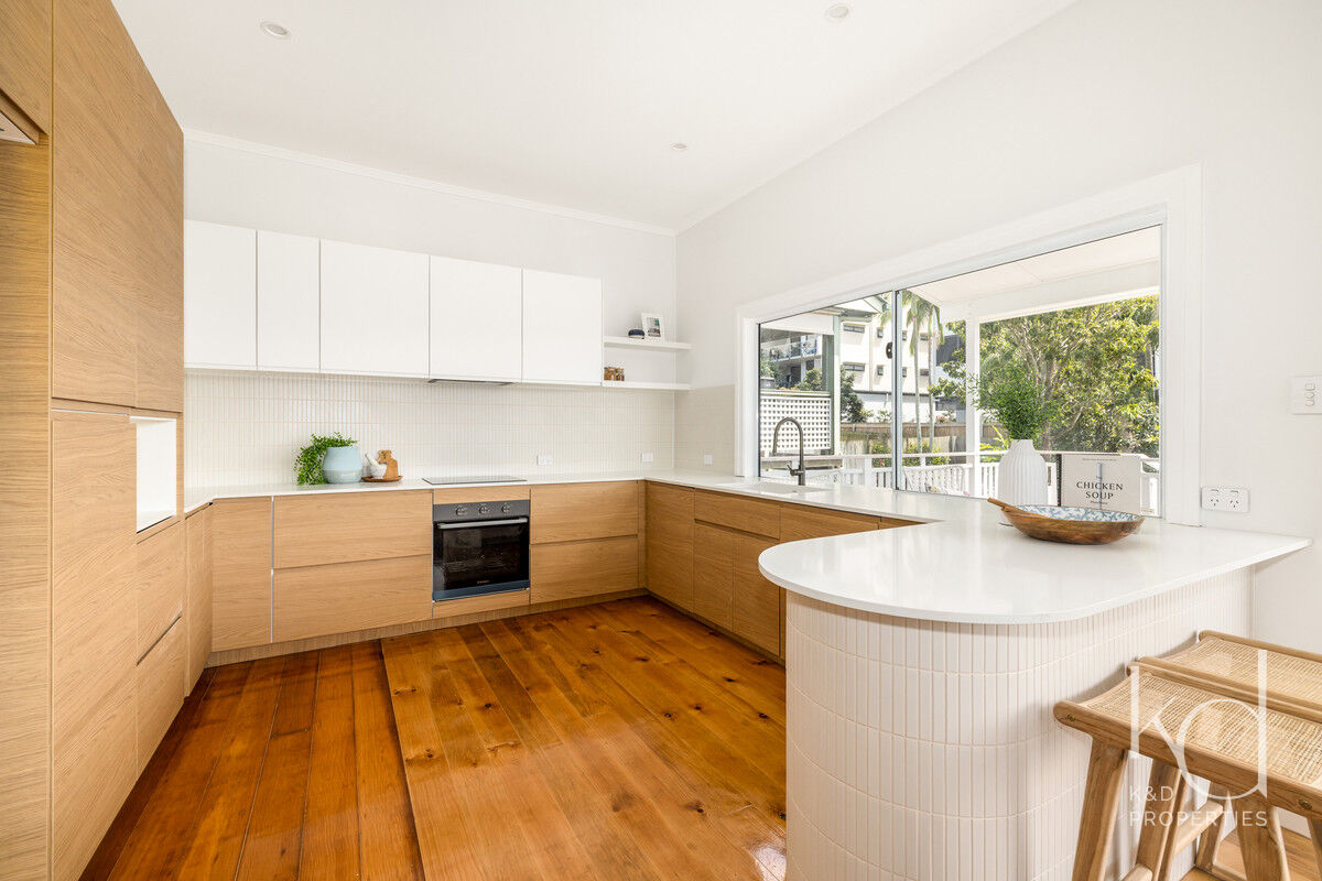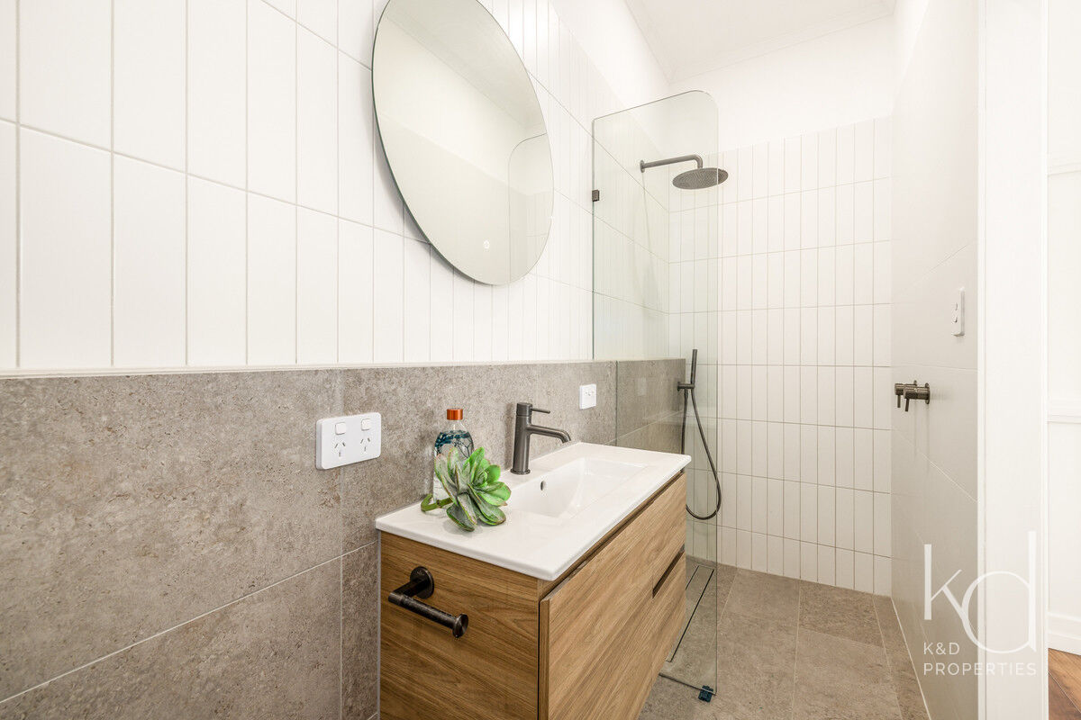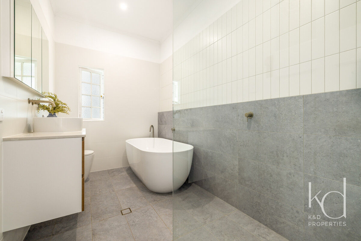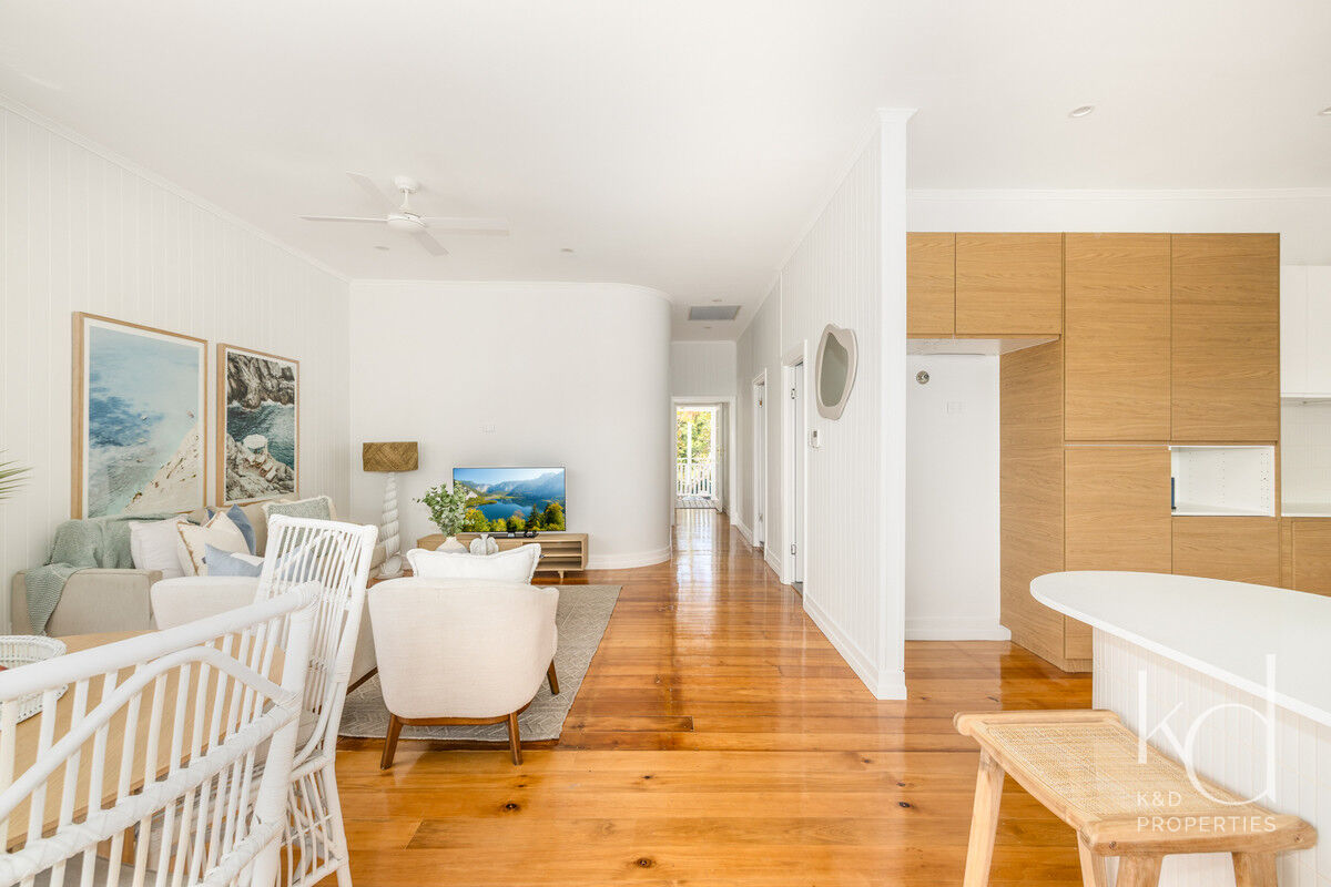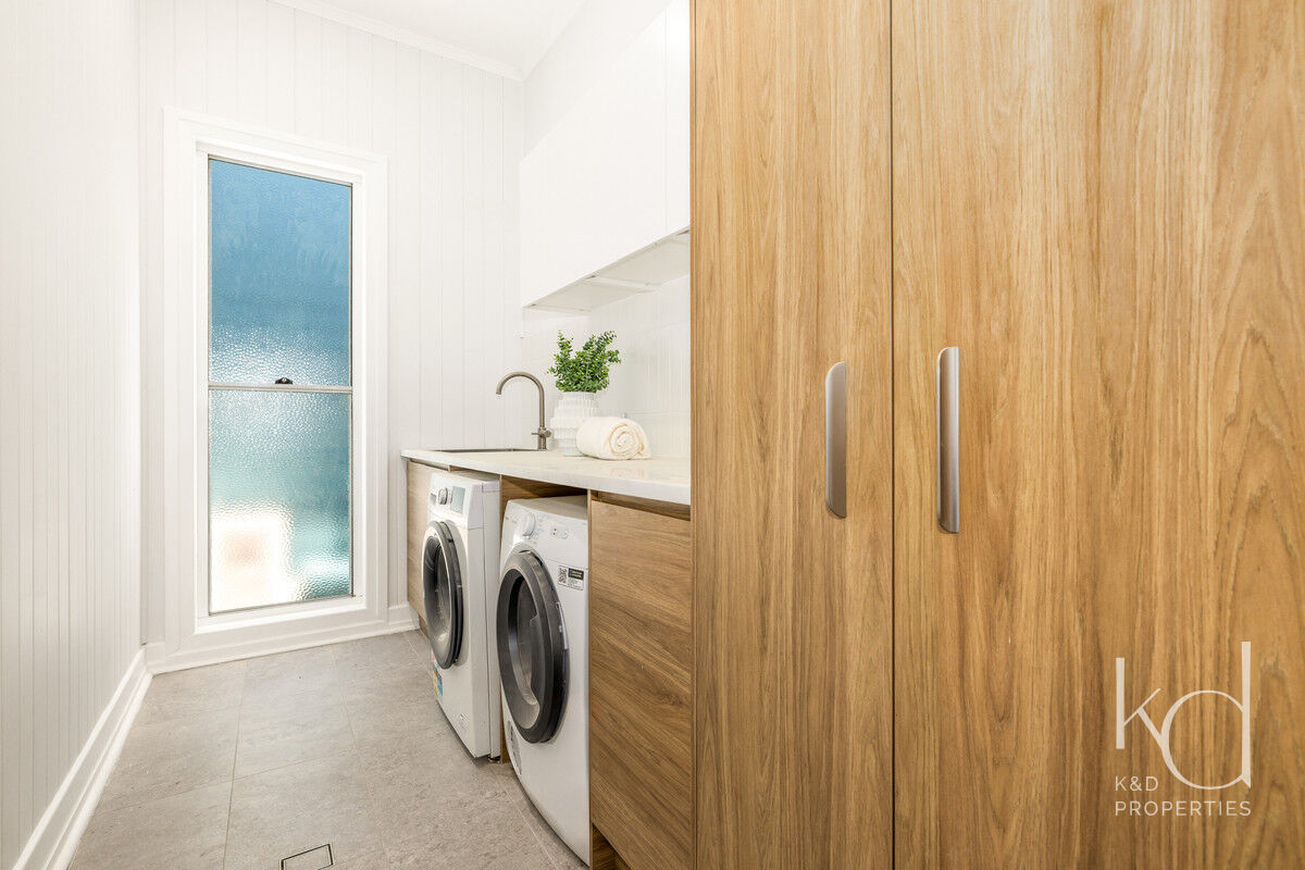Contemporary style carries throughout this light-filled home, where high ceilings, polished hardwood floors, and VJ panelling combine modern comfort with traditional details. The open plan kitchen, dining, and living area flows to a wide rear verandah that catches the breezes and connects seamlessly with the outdoors. Each of the three generously sized bedrooms feature original character windows that are complimented by ducted air conditioning. The primary bedroom includes a modern ensuite and the main bathroom offers the elegance of a free-standing tub. The addition of an upstairs laundry is a rare and very practical inclusion to this style of home, and reflects the owner’s care behind every design choice.