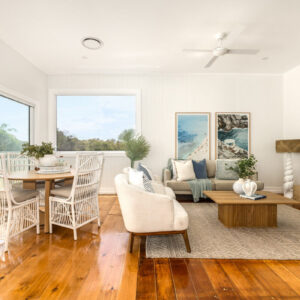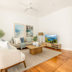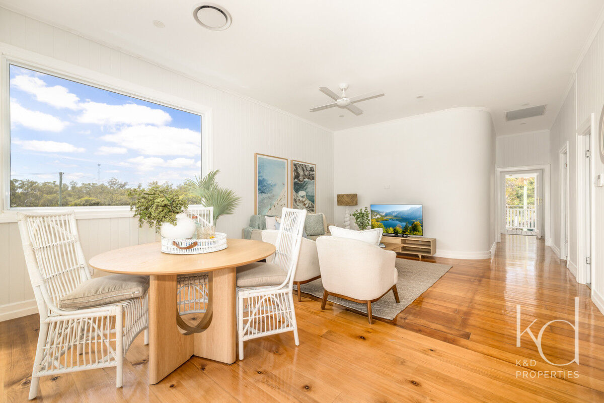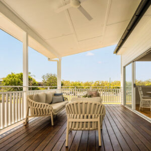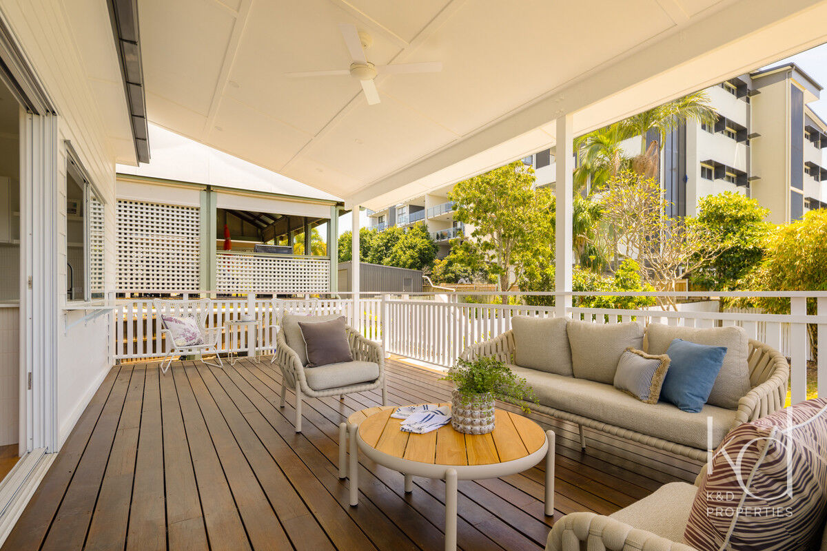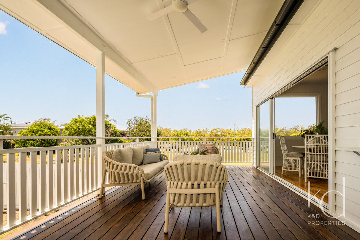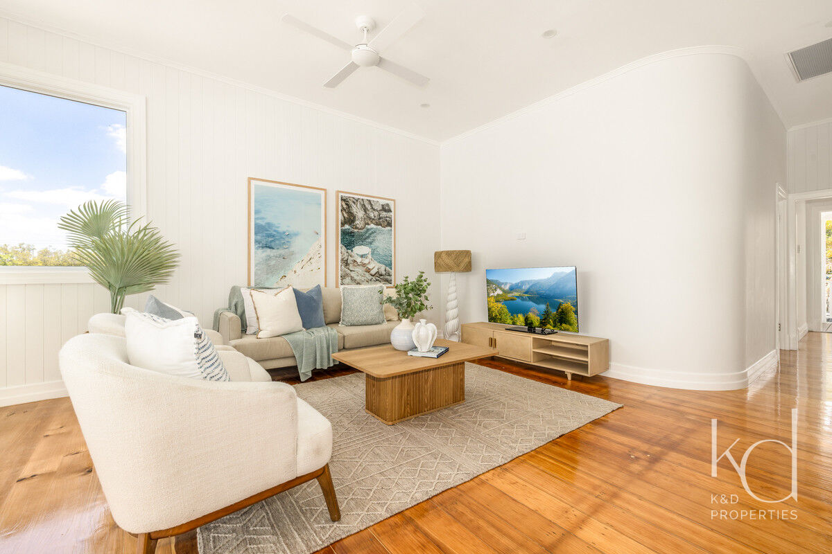 Contemporary style carries throughout this light-filled home, where high ceilings, polished hardwood floors, and VJ panelling combine modern comfort with traditional details. The open plan kitchen, dining, and living area flows to a wide rear verandah that catches the breezes and connects seamlessly with the outdoors. Each of the three generously sized bedrooms feature original character windows that are complimented by ducted air conditioning. The primary bedroom includes a modern ensuite and the main bathroom offers the elegance of a free-standing tub. The addition of an upstairs laundry is a rare and very practical inclusion to this style of home, and reflects the owner’s care behind every design choice.