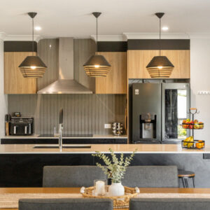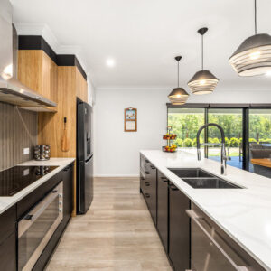 * Kitchen with 900mm oven, electric cooking, plumbed fridge and dishwasher