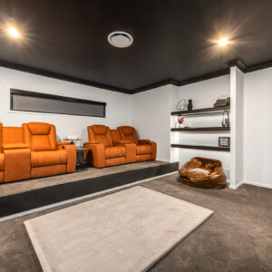 * Extra-large media room with raised theatre platform