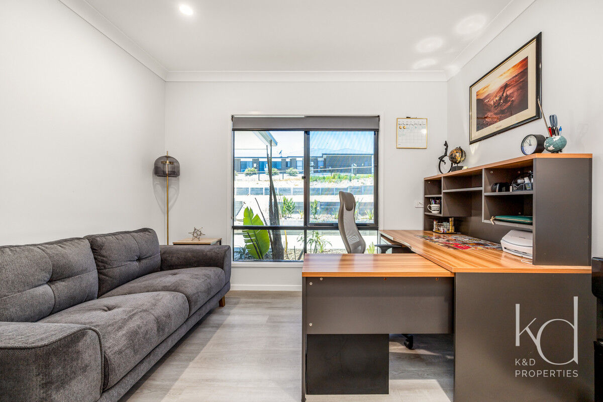 Designed for practical, everyday living, the spacious layout includes a well-equipped kitchen with wet butlers pantry, a wide, central dining space, and a bright and roomy living area. The enormous primary room has a double shower and freestanding bath, and the three other bedrooms and office are all also generously sized. An extra-large media room provides the perfect home cinema experience, and ducted air-conditioning, ceiling fans, and a separate laundry with plenty of storage add day-to-day ease. The inside of this home is completely finished, refined, and ready to enjoy.