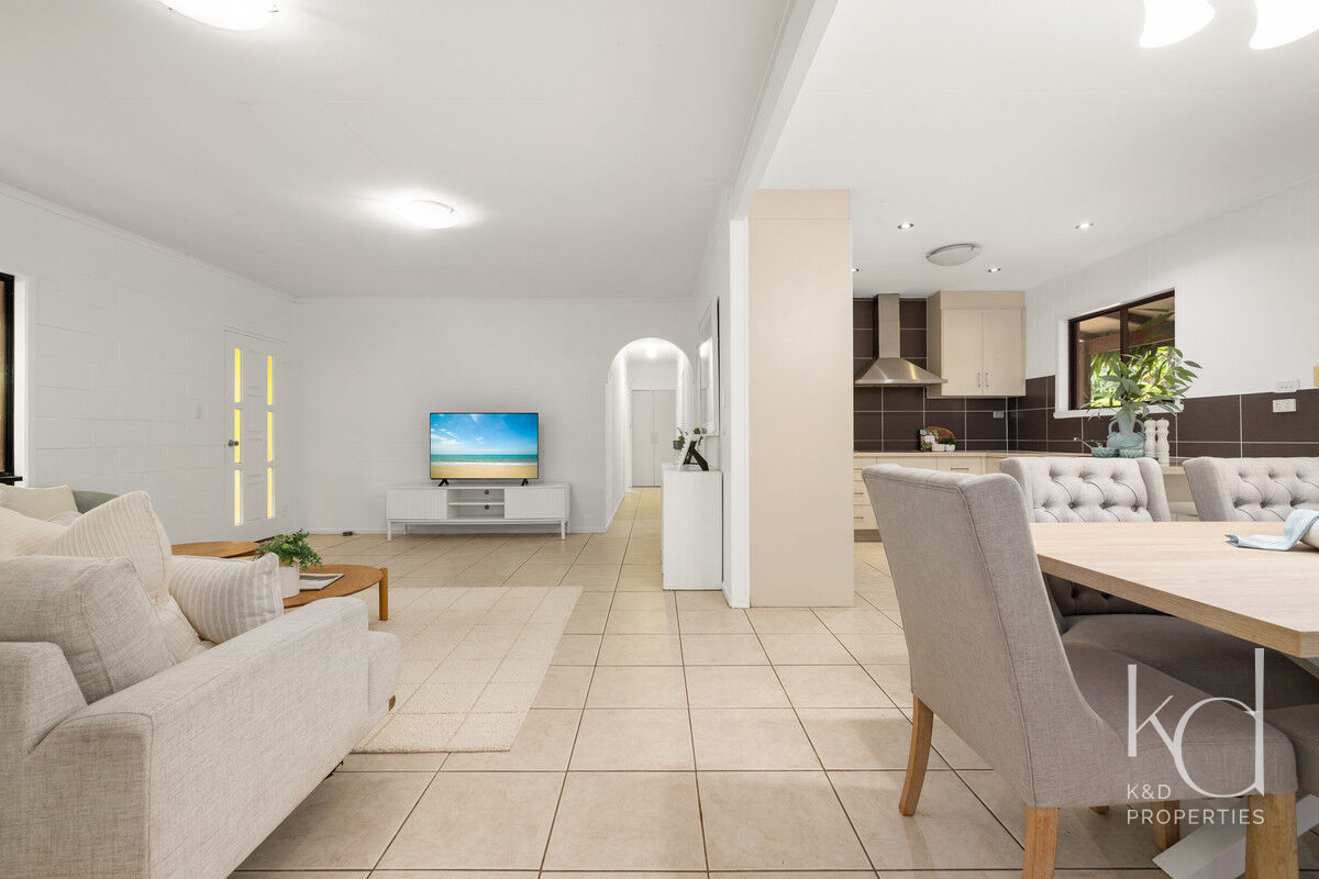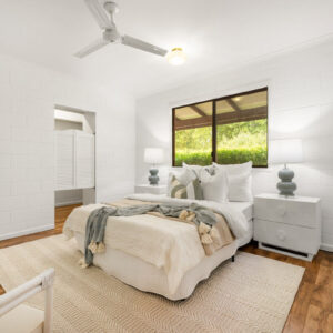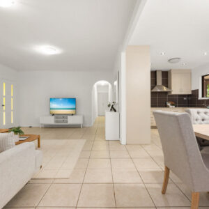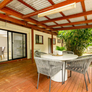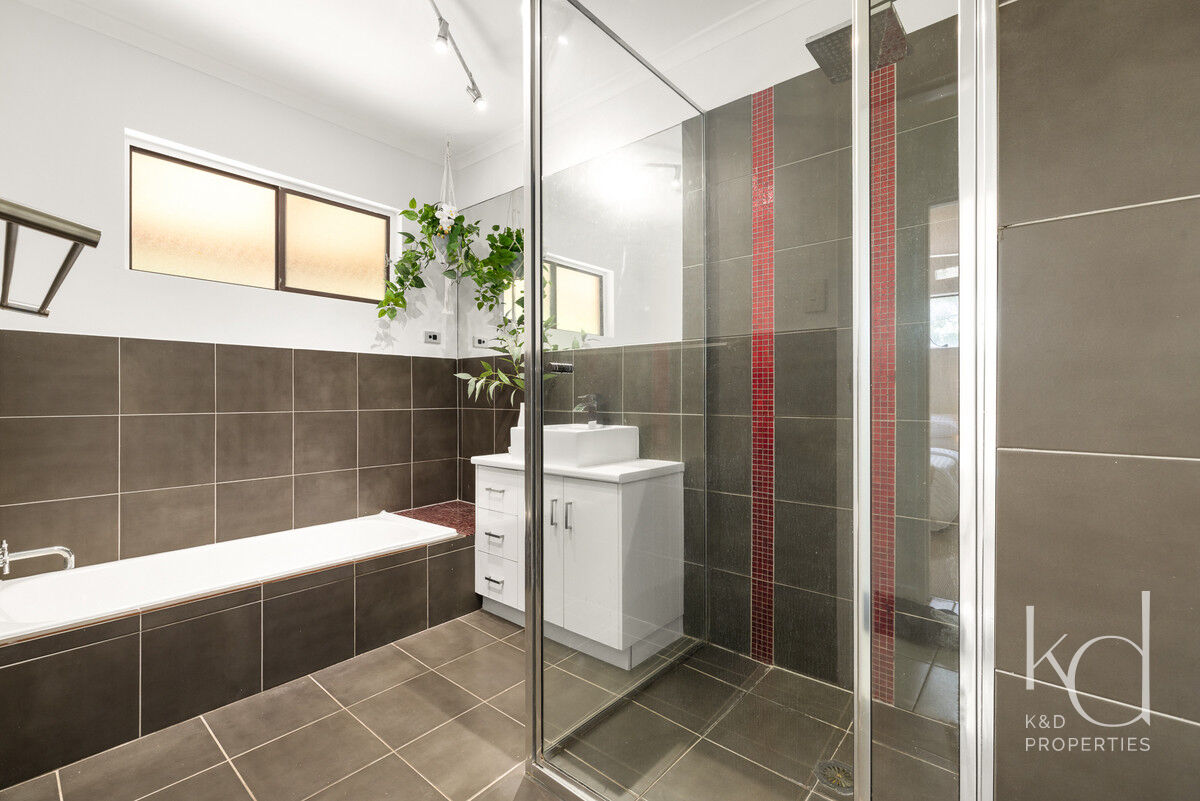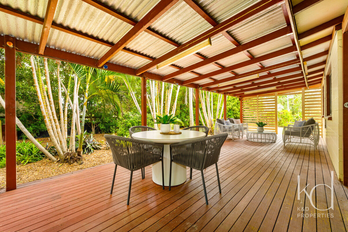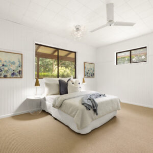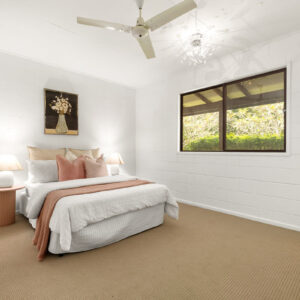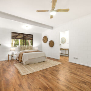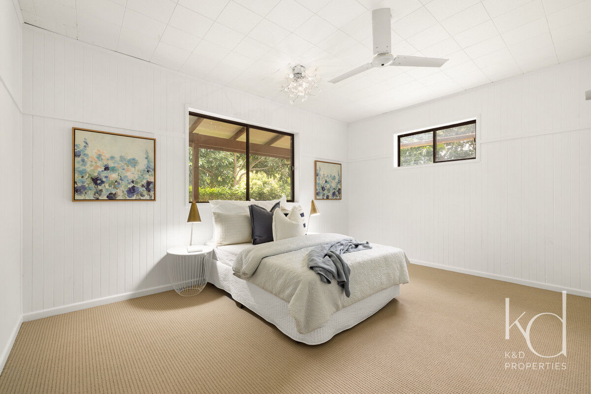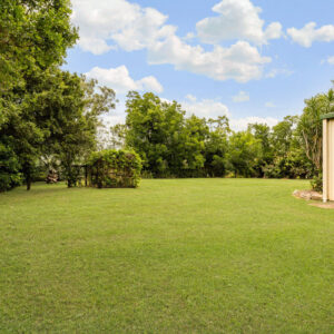 Inside, there is plenty of room for a larger family. The generously sized open-plan lounge, dining, and kitchen area is the heart of the home, and opening up to the front and rear verandahs, it is a cool a comfortable place for the family to gather. Five spacious bedrooms, with built-ins and ceiling fans, offer each family member their own space to relax in and enjoy. The main bathroom has been modernised, the primary room’s ensuite includes a spa, and the laundry is oversized to double as a hobby or sewing room. With a layout that has 3 rooms set to one end of the home, and the primary and an additional room at the other, there is a separation of living that would also adapt nicely to multigenerational living.