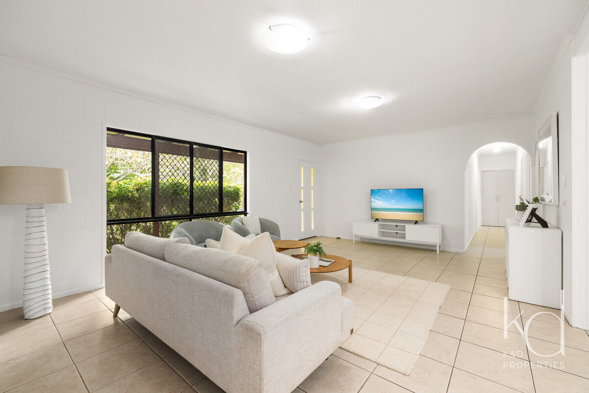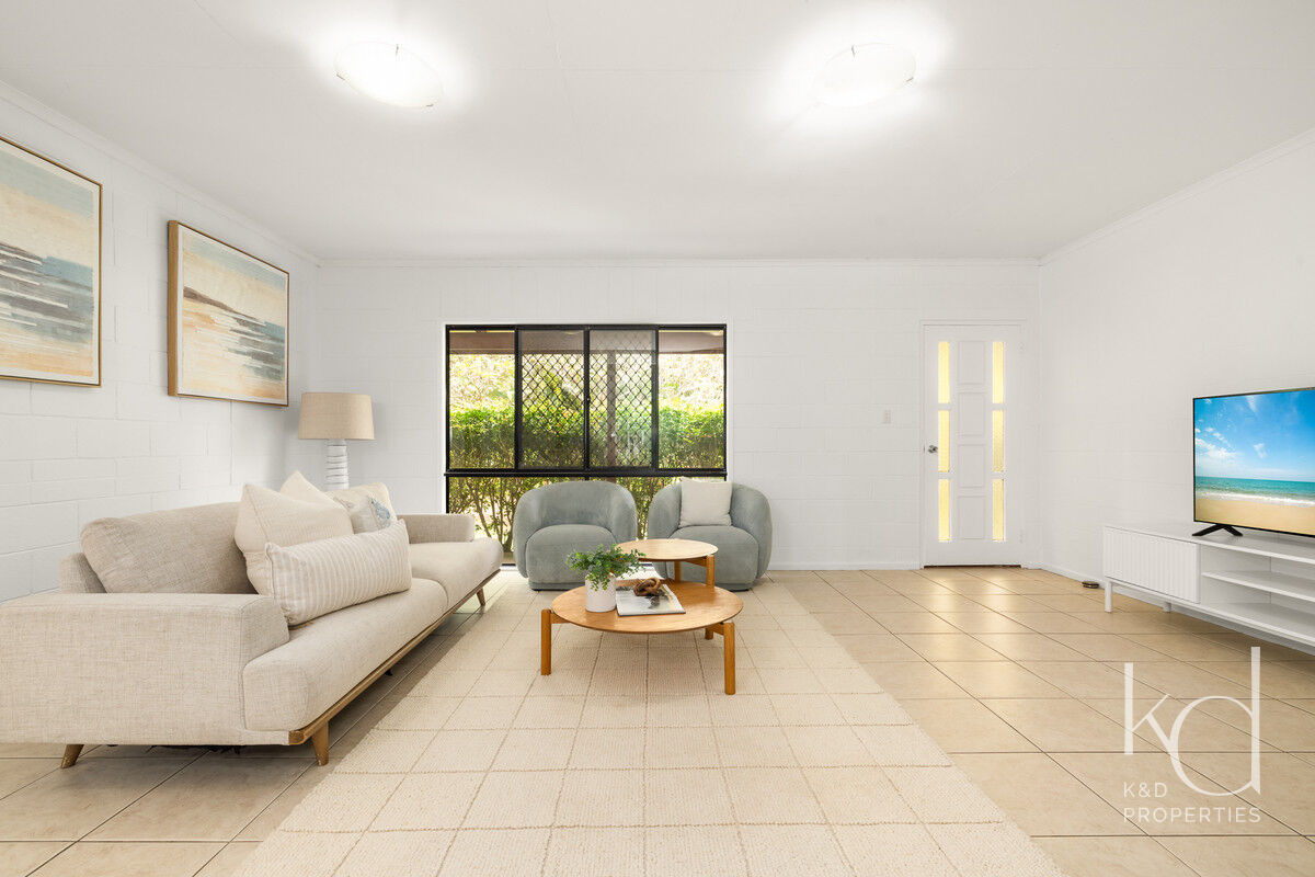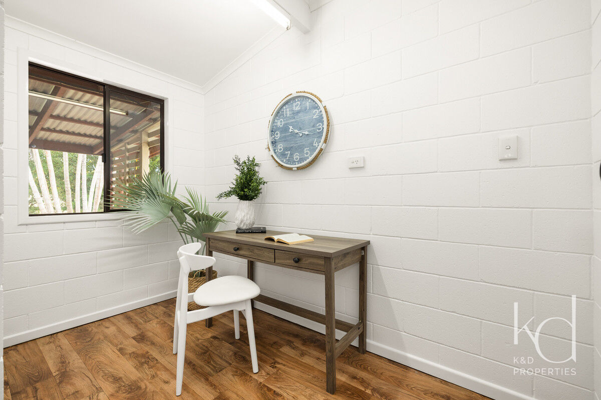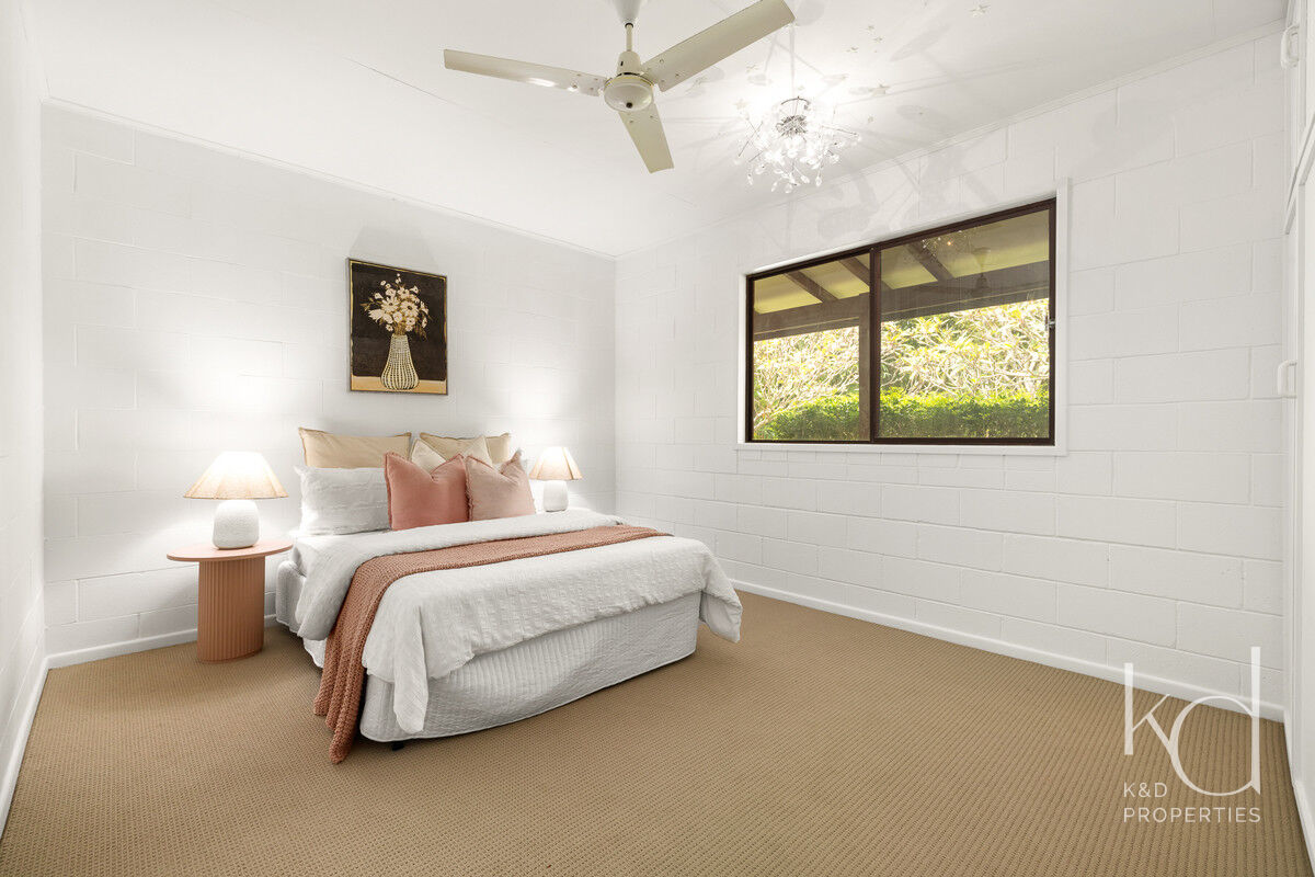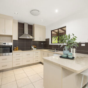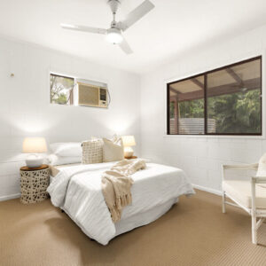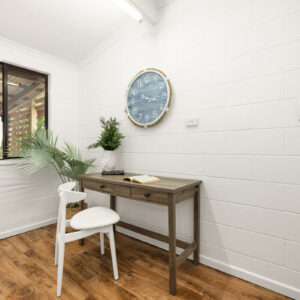Inside, there is plenty of room for a larger family. The generously sized open-plan lounge, dining, and kitchen area is the heart of the home, and opening up to the front and rear verandahs, it is a cool a comfortable place for the family to gather. Five spacious bedrooms, with built-ins and ceiling fans, offer each family member their own space to relax in and enjoy. The main bathroom has been modernised, the primary room’s ensuite includes a spa, and the laundry is oversized to double as a hobby or sewing room. With a layout that has 3 rooms set to one end of the home, and the primary and an additional room at the other, there is a separation of living that would also adapt nicely to multigenerational living.