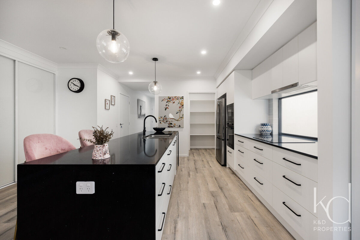 At the heart of this home is the open-plan kitchen, living and dining area, where natural light creates a warm and inviting atmosphere. The kitchen features a walk-in pantry — a practical addition that makes day-to-day cooking simple and organised — and the large living area flows directly to the undercover alfresco area, perfect for a quiet breakfast or a lively weekend barbecue.