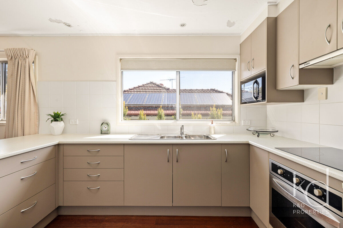 Upstairs, the kitchen, living and dining areas are well proportioned and flow through to the front balcony, while three large bedrooms provide plenty of room for the whole family. A central bathroom with separate toilet adds everyday practicality, and the original hardwood floors offer a solid foundation to enhance as part of future renovations.