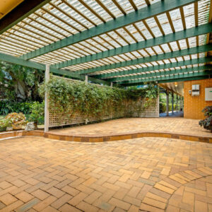 • Wide paved and covered front courtyard