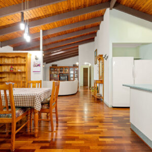The floorplan is wide and long, creating an exceptional sense of volume throughout. Designed with two distinct wings, one incorporates the main open plan living area, three bedrooms, and a central bathroom, while the second includes the formal living area, two further bedrooms, a study nook, a laundry with guest bathroom, and an ensuite to the primary bedroom. This layout lends itself beautifully to large families or multigenerational living, offering privacy without disconnection. The home’s original décor has been meticulously cared for and is in excellent condition, allowing a new family to move straight in, live comfortably, and modernise over time.